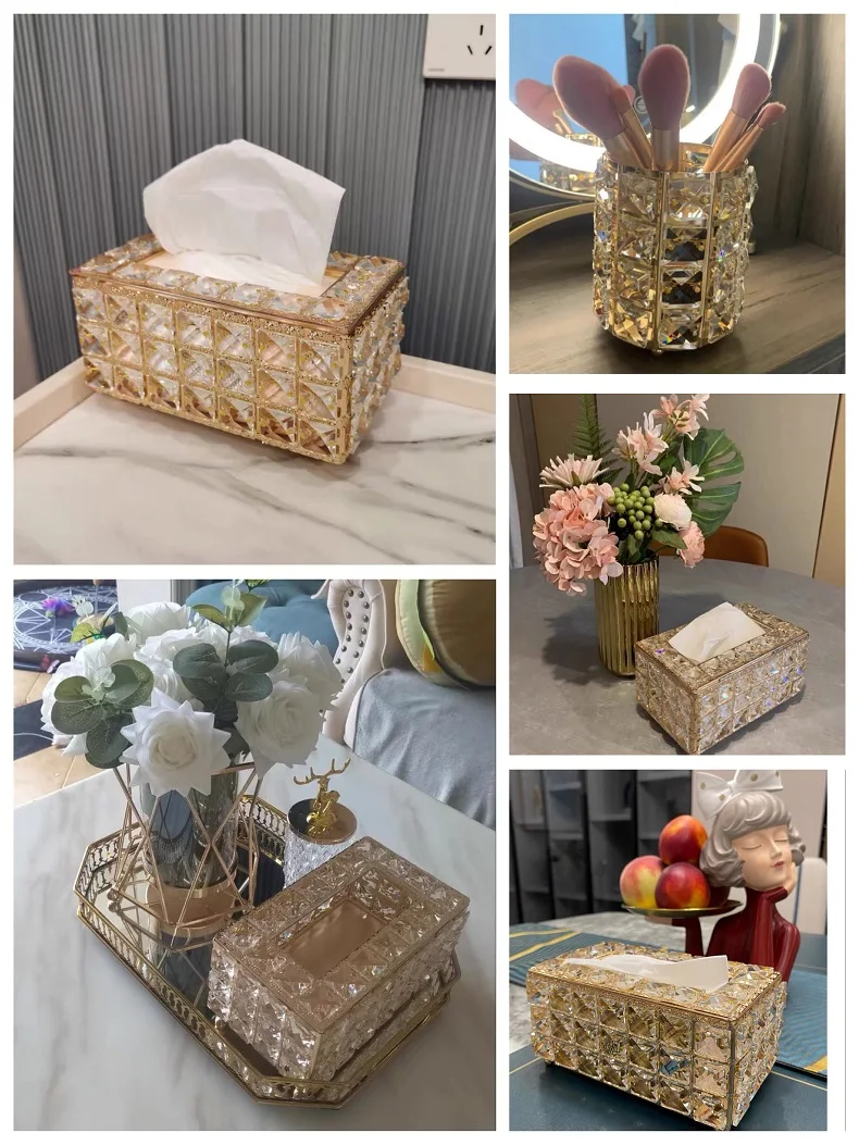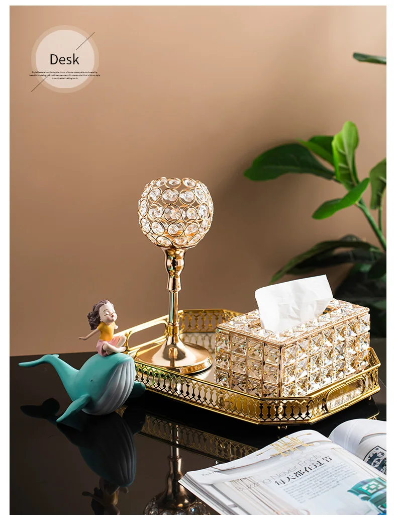 Золотая стеклянная коробка для салфеток, подсвечник, Современное украшение для дома, органайзер для хранения стола, аксессуары, портативный держатель для салфеток, подарки