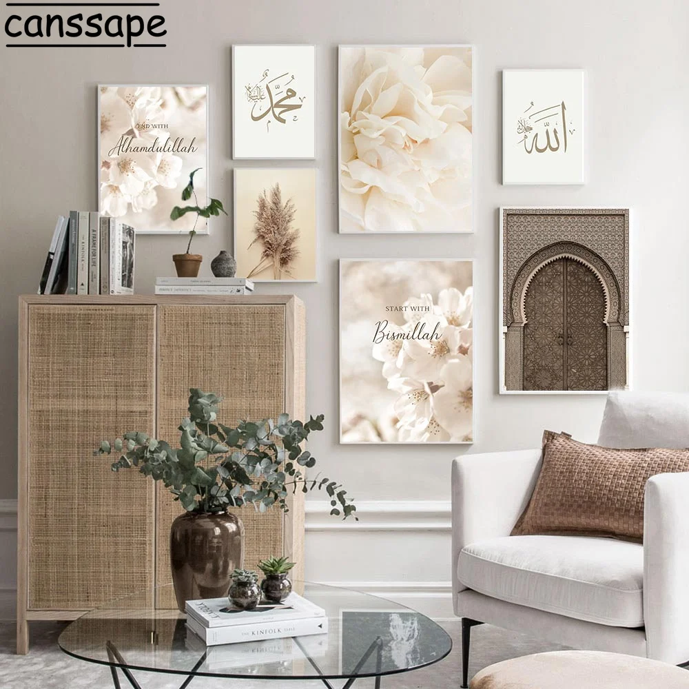 Исламский холст, постер с цветами, цитаты, настенная живопись, арабская каллиграфия, печать марокканских дверей, настенные картины, украшение для гостиной