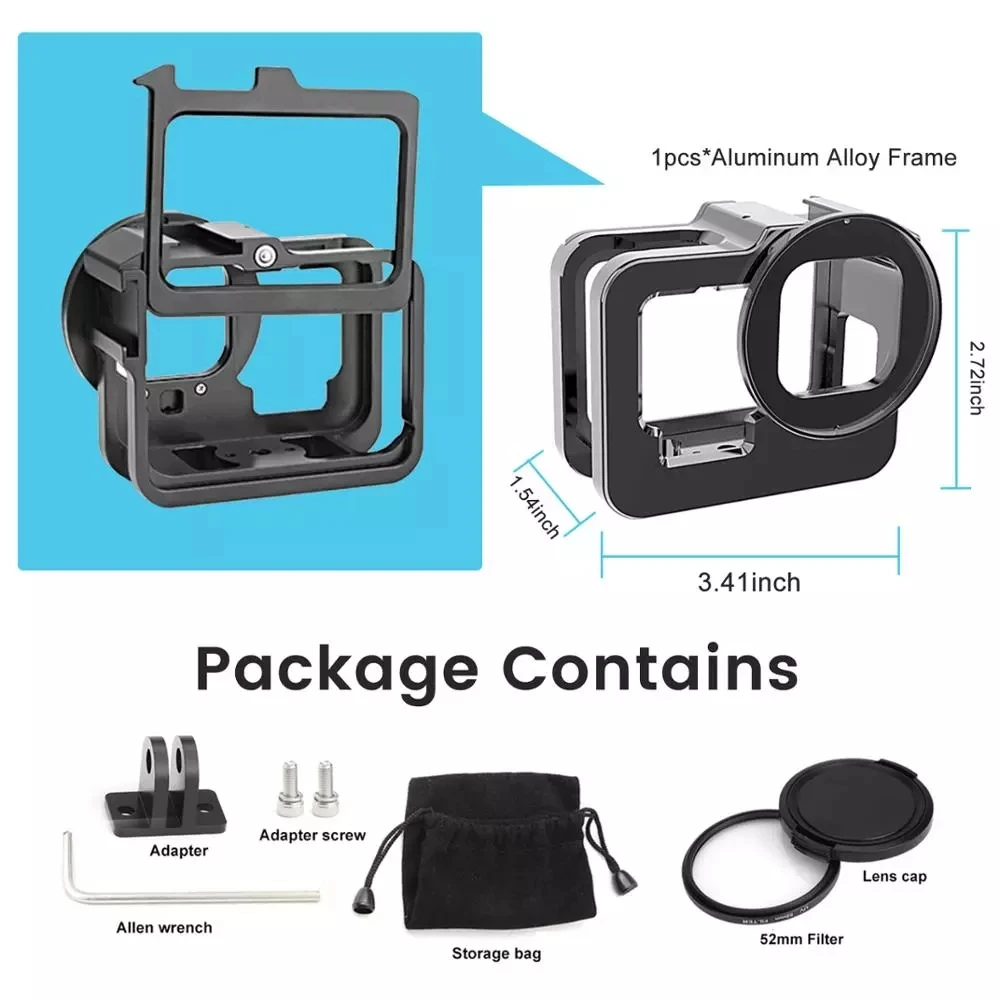Совместимость с черной экшн-камерой GoPro HERO 9: совместимость с черной экшн-камерой Gopro HERO 9, литье под давлением с ЧПУ из алюминиевого сплава, деликатный дизайн, простота установки.