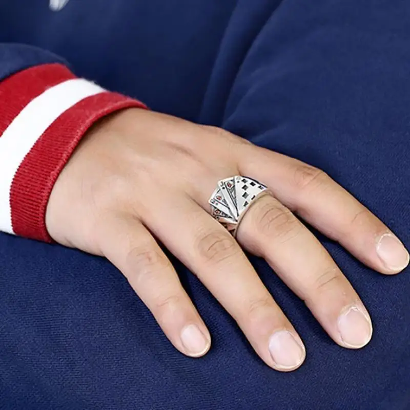 Европейское и американское популярное индивидуальное Открытое кольцо в стиле панк для покера, Трендовое хип-хоп локомотивное ювелирное изделие для мужчин