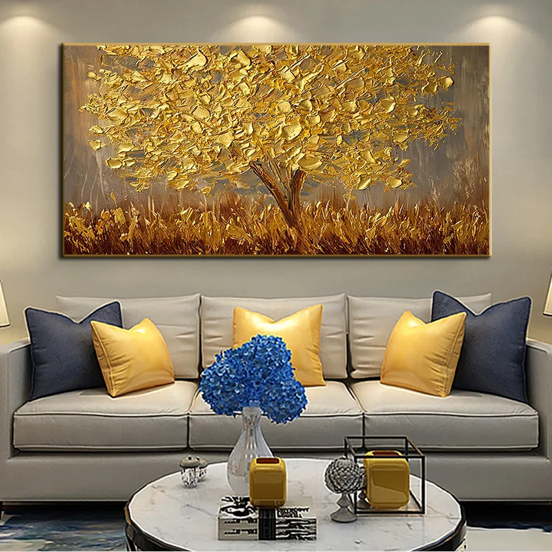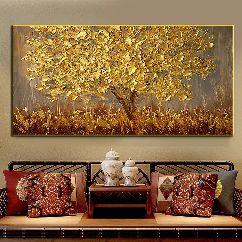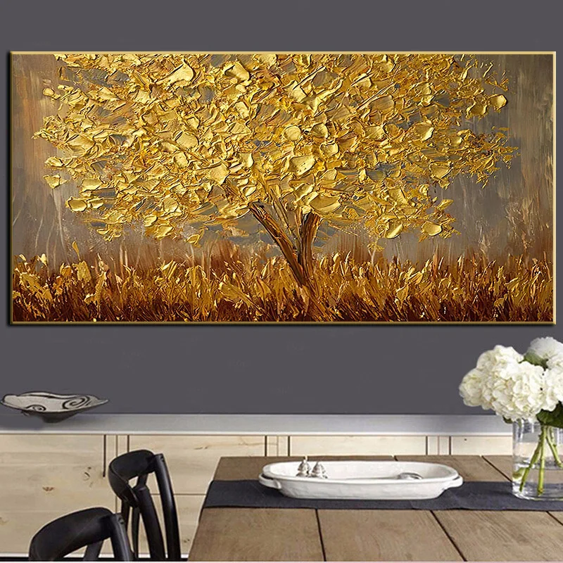 Абстрактная картина маслом с золотым деревом, постер на холсте, современная картина на стену, картина для гостиной, домашний декор, Таблица