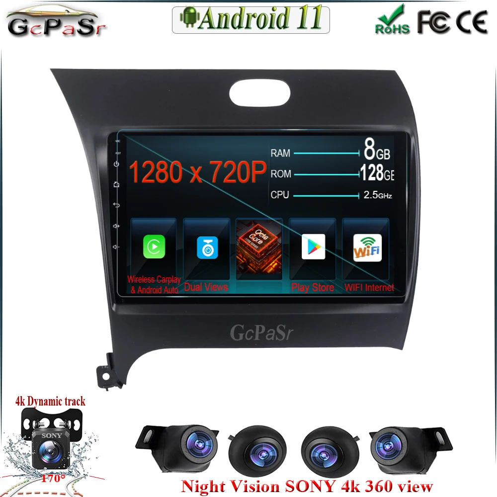 Android 11 для Kia CERATO K3 FORTE 2013 2014 2015 2016 автомобильное Стерео Радио мультимедийный плеер мультимедийная стереосистема 360 камера 9 WIFI