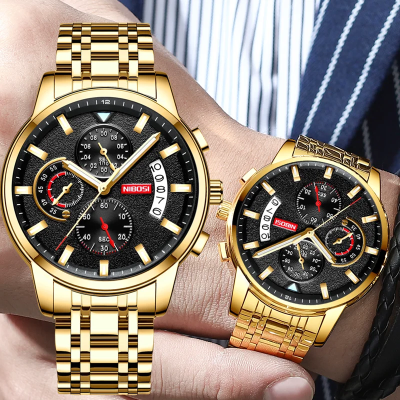Часы наручные NIBOSI Мужские кварцевые, модные спортивные брендовые Роскошные водонепроницаемые с хронографом