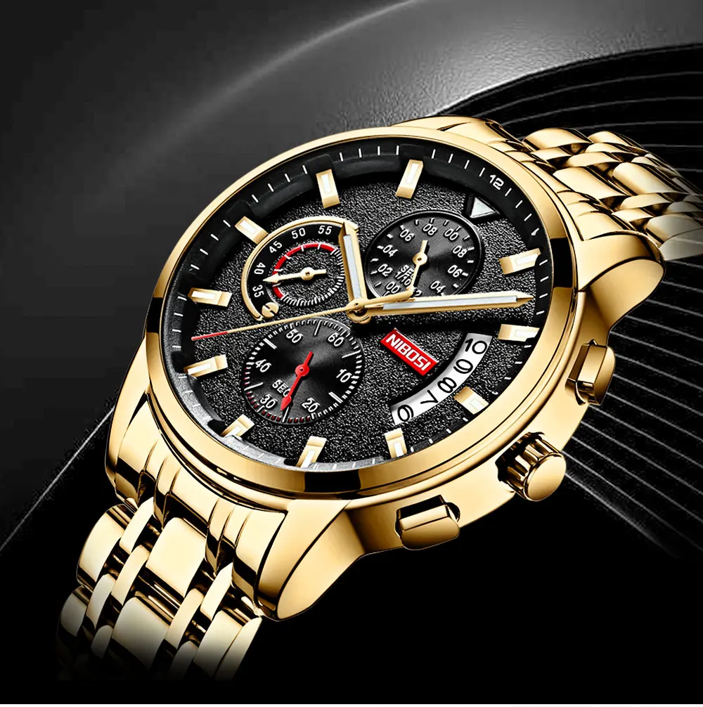 Часы наручные NIBOSI Мужские кварцевые, Брендовые спортивные стальн...