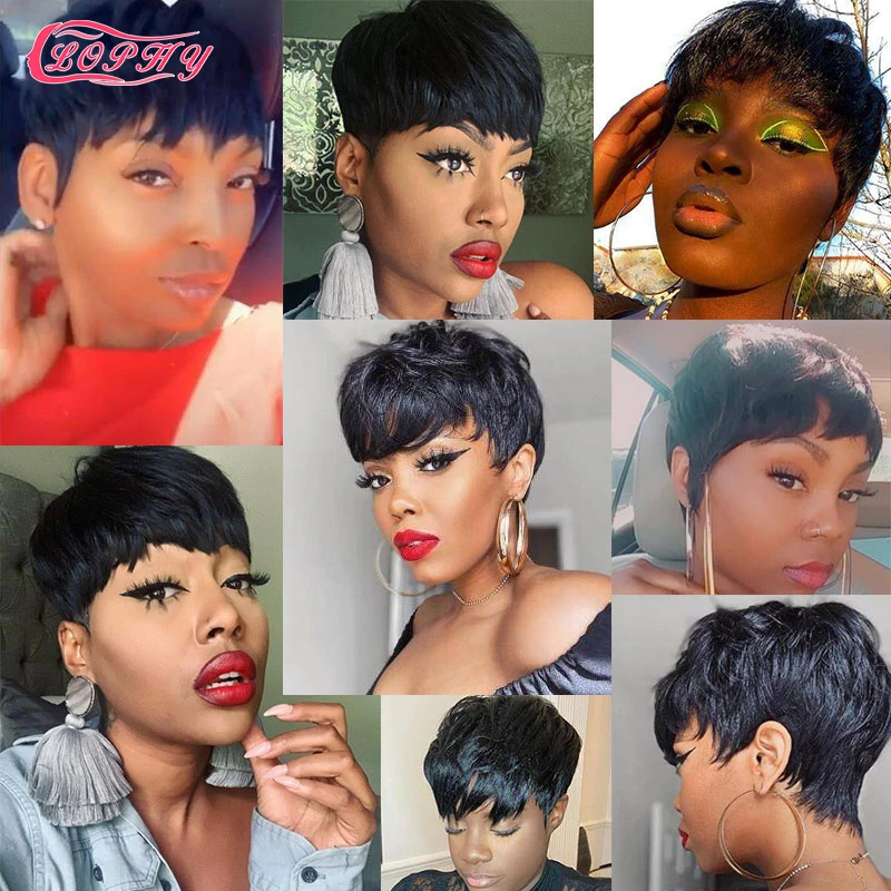 Парики из натуральных волос короткие стрижки Пикси прямой парик Боб...