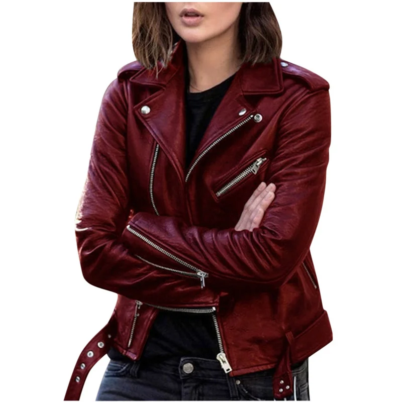 Женская короткая куртка из искусственной кожи, черная, винная, красная, синяя куртка из искусственной кожи, модель GH595 на весну и осень, 2021