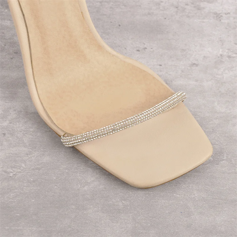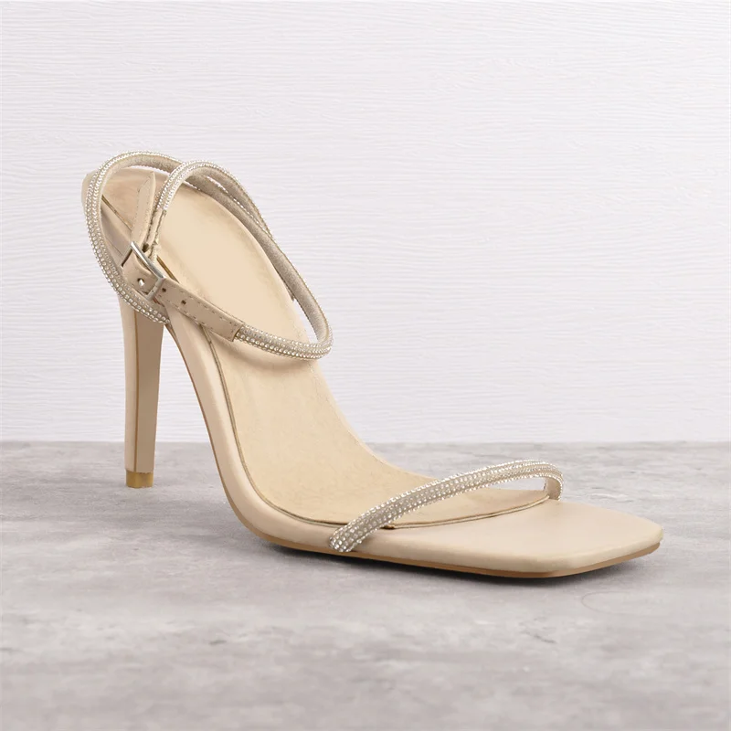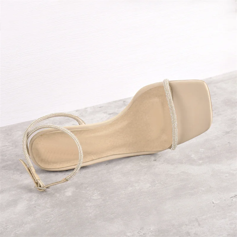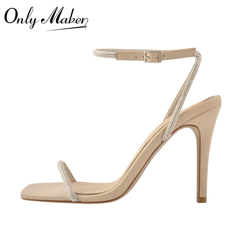 Женские босоножки с квадратным носком Onlymaker, летние матовые сандалии цвета хаки на тонком высоком каблуке с блестками, большие размеры