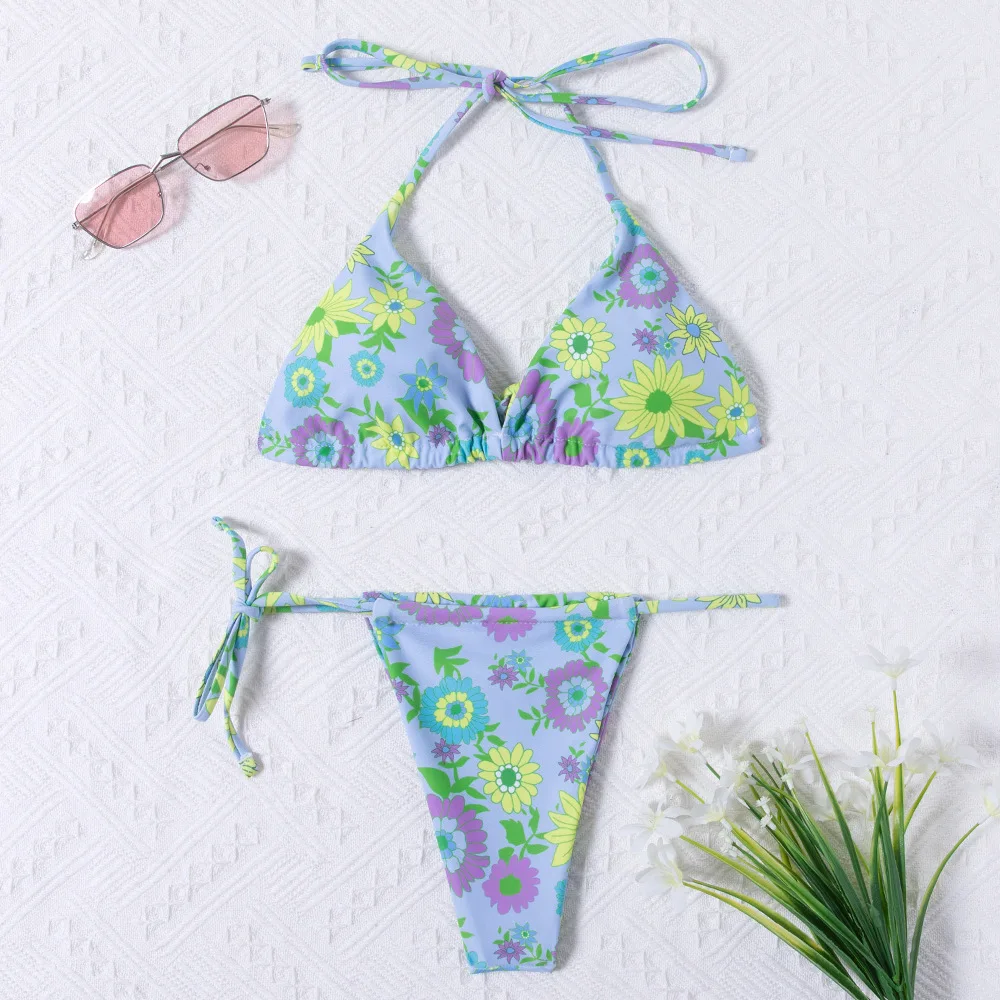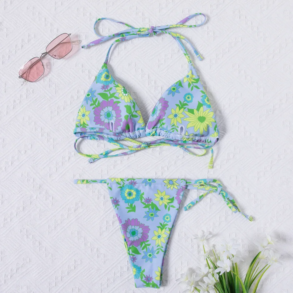 2021 Новый Купальник Бикини С Треугольными Чашечками И Цветочным Принтом Одностороннее Кружевное Бикини С Кружевом