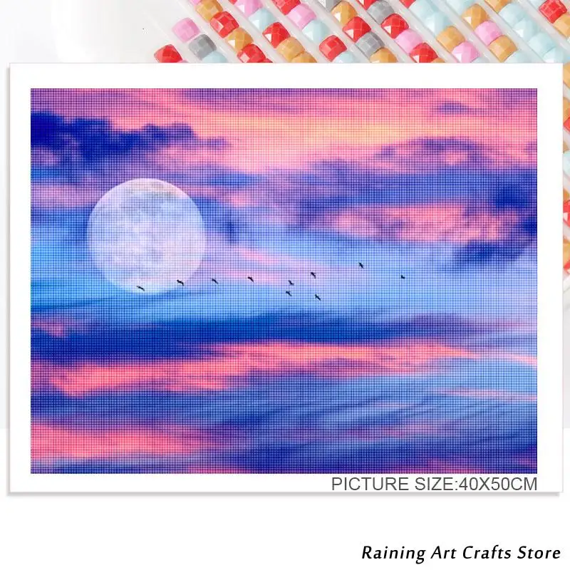 5D алмазная живопись сделай сам, розовое голубое небо, закат, Пляжная вышивка, полная круглая квадратная Вышивка крестиком, пейзаж, мозаика, Декор