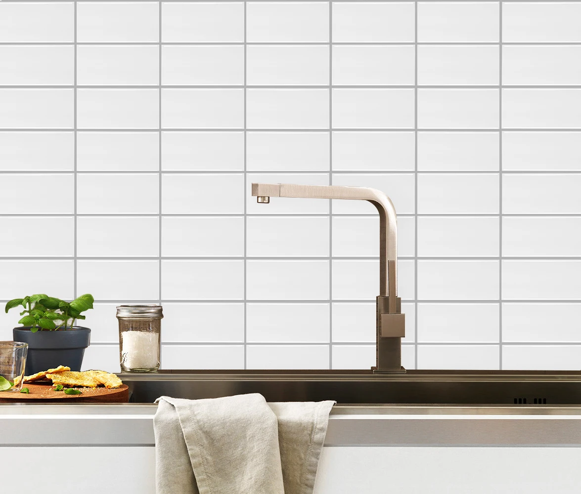 Плитка может быть легко установлена непосредственно над существующими панелями или гладкой поверхностью. Специально разработанная для кухни и ванной, плитка устойчива к нагреванию плиток и влажности ванных комнат.