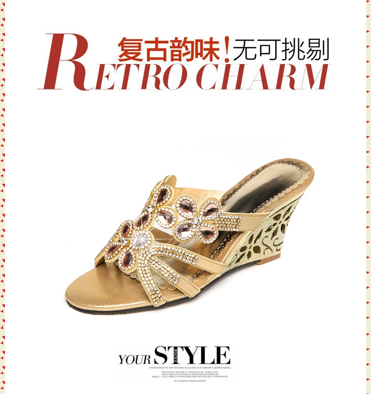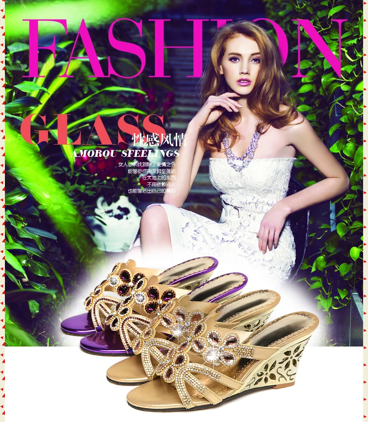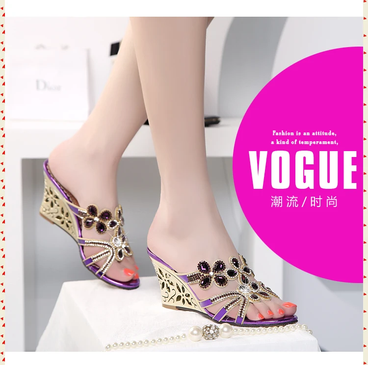 Стразы, женские сандалии и тапочки, новые женские туфли на высоком каблуке с кристаллами и стразами, тапочки на танкетке с открытым носком