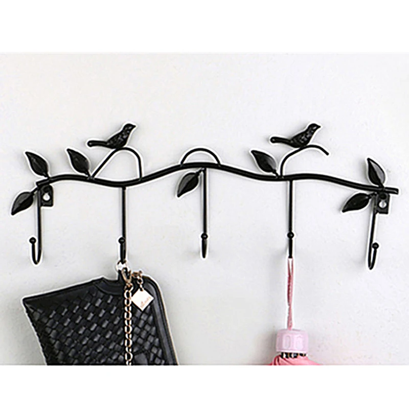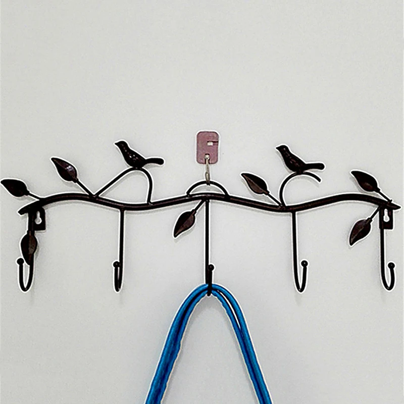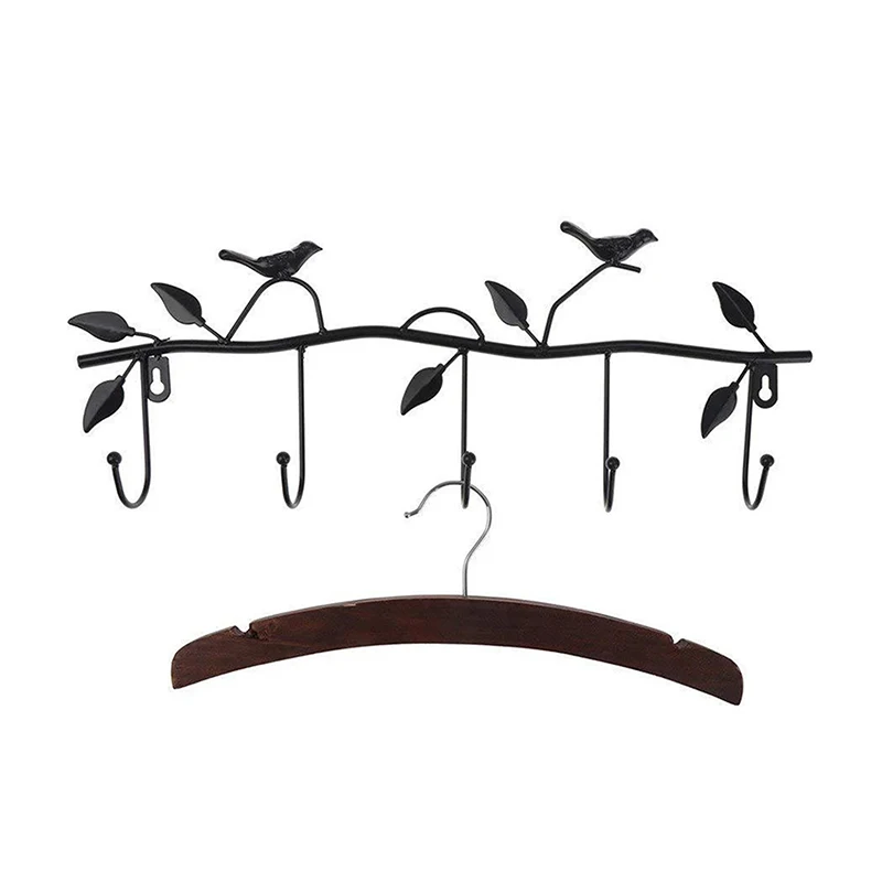 Ретро 5 крючков из кованого железа, искусственный крючок, птица, лист, стена, платье, крючок для халата, брелок, держатель для ключей