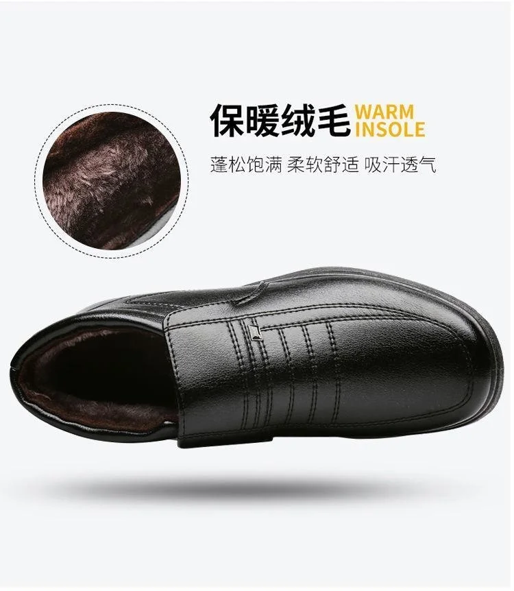 [Быстрый возврат] зимняя плюшевая теплая плюшевая кожаная обувь с высоким берцем Мужская обувь среднего и пожилого возраста хлопковая обувь Нескользящая обувь с рукавами мужская обувь