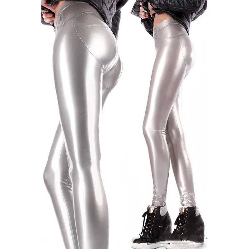 Сексуальные женские прозрачные коричневые латексные леггинсы с высо...