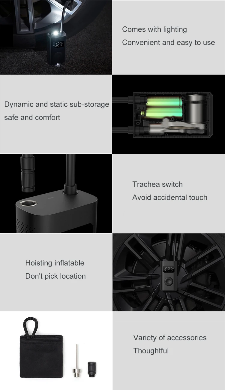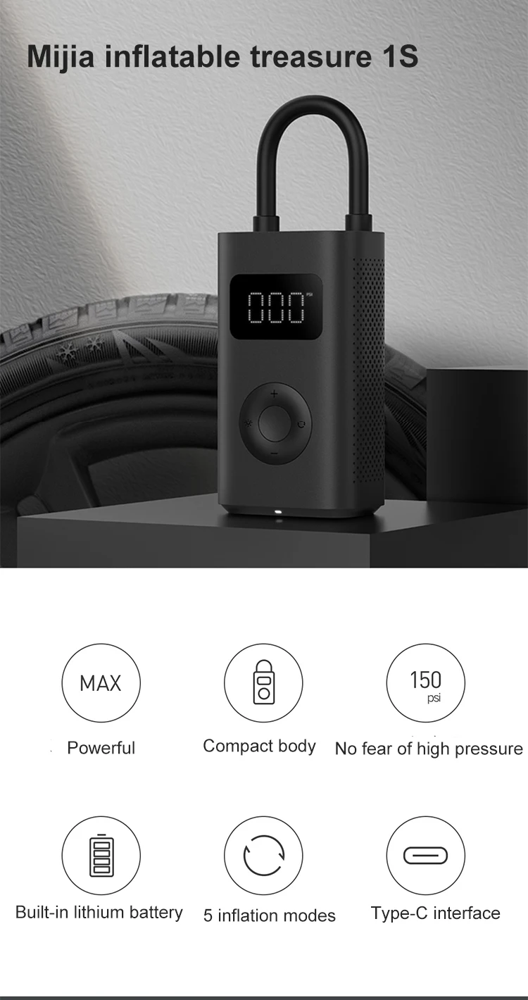 По сравнению со старым надувным сокровищем Mijia★Срок службы надувной батареи увеличен примерно на 45.4%, может заменить около 8 шин.★Расход газа увеличился примерно на 114%★Высокоточный цилиндр может заряжаться до 150psi★Датчик давления воздуха обновлен до цифрового чипа, точность обнаружения давления в шинах увеличивается до ± 1psi *, ошибка меньше, нет необходимости полагаться на стопу, чтобы повторно проверить, полностью ли она заполнена.★Предустановленное давление полностью заряжено и останавливается немедленно, экономя усилия и беспокойство.★5 режимов можно переключать без препятствий.★Встроенный литиевый аккумулятор для избавления от проводов.★Легкий, портативный и легко хранить.