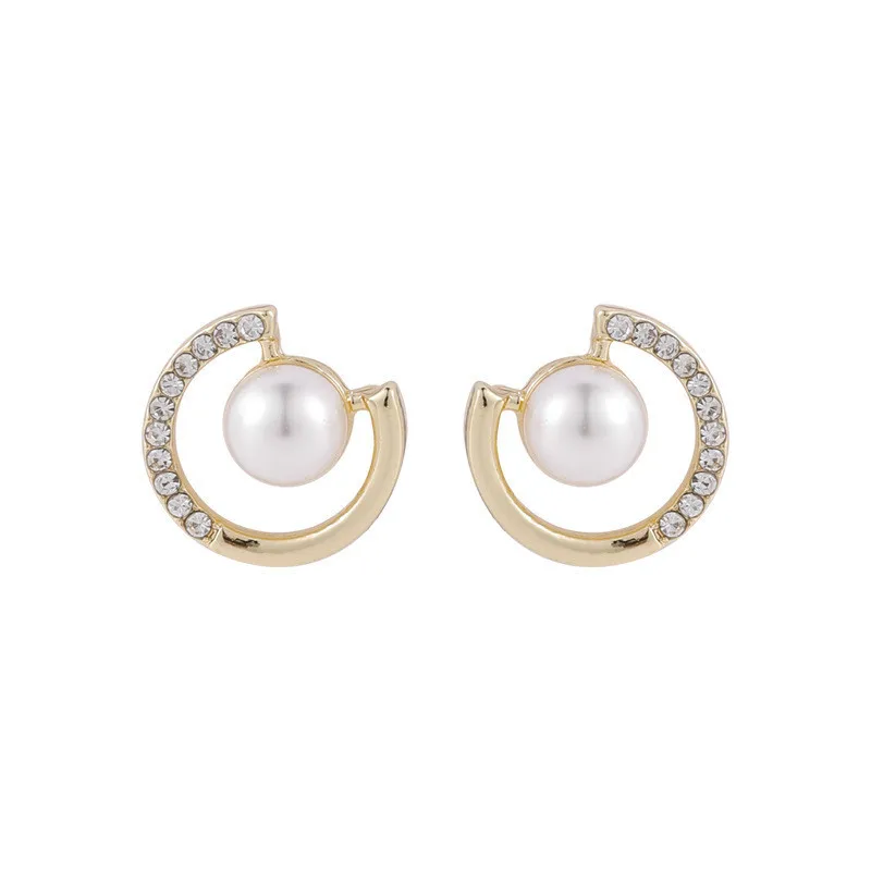Серьги-гвоздики женские круглые с искусственным жемчугом и кристаллами