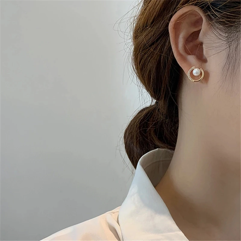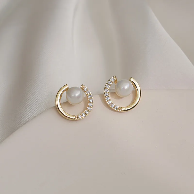 Серьги-гвоздики женские, круглые, с-образные, с жемчугом, 1 пара
