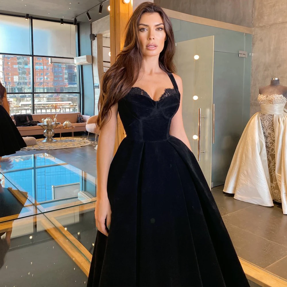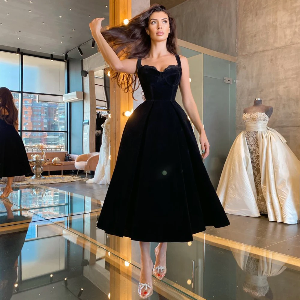 2021 простые элегантные короткие велюровые вечерние платья с лямкой на шее черного цвета длиной ниже колена для особых случаев
