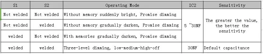 Long press touch:to achieve stepless dimming, a long press touch, the brightness of the light gradually increased, the brightness of the light when the release time to release the brightness of the release, once again press the touch, the brightness gradually reduced.