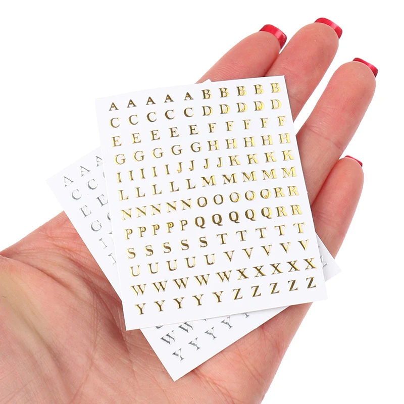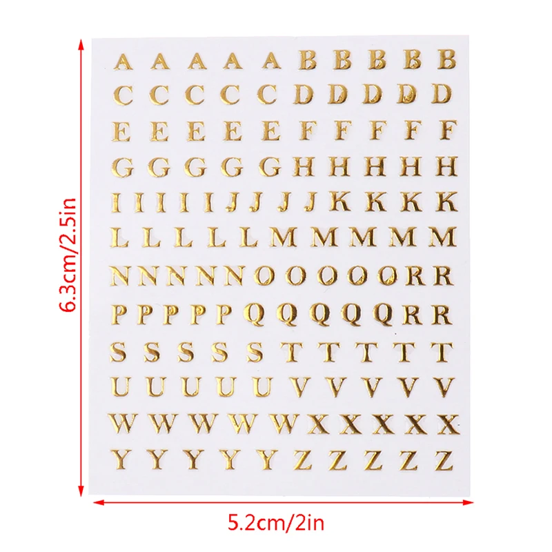 Specification:Type: Metallic Sticker.Style: Number & Alphabet Letter.Size:5.2cm * 6.3cm.Optional Color: Silver, Gold.Alphabet Letter Range: A~Z.Quantity: 1 Sheet / Pack.