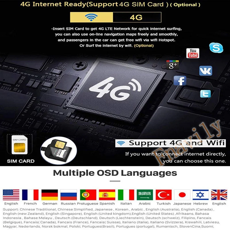 Высокоскоростная сеть 4G / WIFI: поставляется со встроенной сетью Wi-Fi и может поддерживать последний модуль 4G, что позволяет легко получить доступ к Интернету, чтобы слушать музыку онлайн, смотреть онлайн видео, смотреть онлайн игры, проверка электронной почты и т. Д.