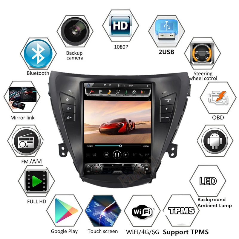 Автомагнитола на Android 10 для Hyundai Elantra, автомобильный DVD-плеер, мультимедийная система, стерео, GPS, Авторадио, навигация, вертикальный экран 10,4 дюйма
