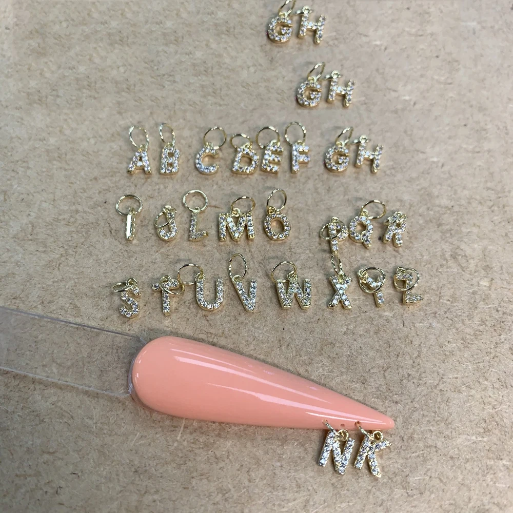 Буквы подвески-буквы болтаются (кулоны)-26 шт.компл. A to Z Золотой Циркон 26 висячих ногтей буквы Шарм ногтей ювелирные изделия Стразы (26)
