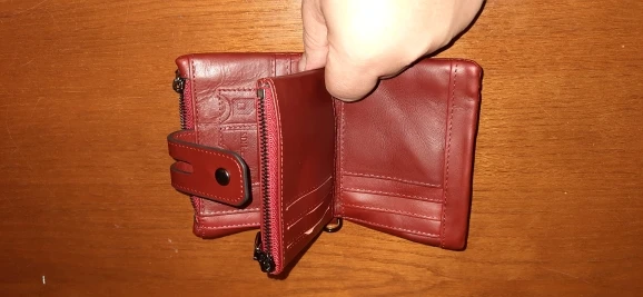 до юфо добрался за 3 недели. НЕ НАТУРАЛЬНАЯ КОЖА - но мягкая и приятная на ощупь. большие купюры едва умещаются, но умещаются без впихивания. раздел для мелочи желательно чуть шире или замок завернуть вниз - не удобно доставать. отстегивающуюся часть удобно брать с мелочью, если не нужен бумажник целиком. бумажник довольно толстый. но сейчас подобные все такие. на всякий случай есть вторая кнопка, чтобы застегнуть, если сильно распухнет от содержимого - полезная фишка. передняя молния - лишняя. цепочки с карабином в комплекте не было.