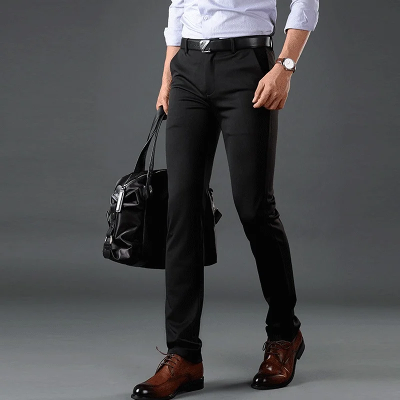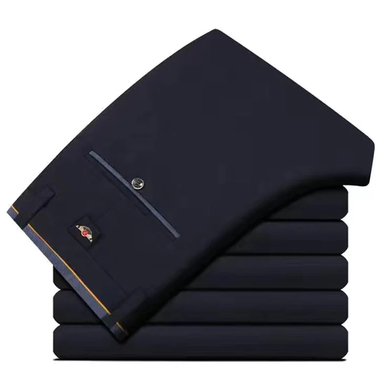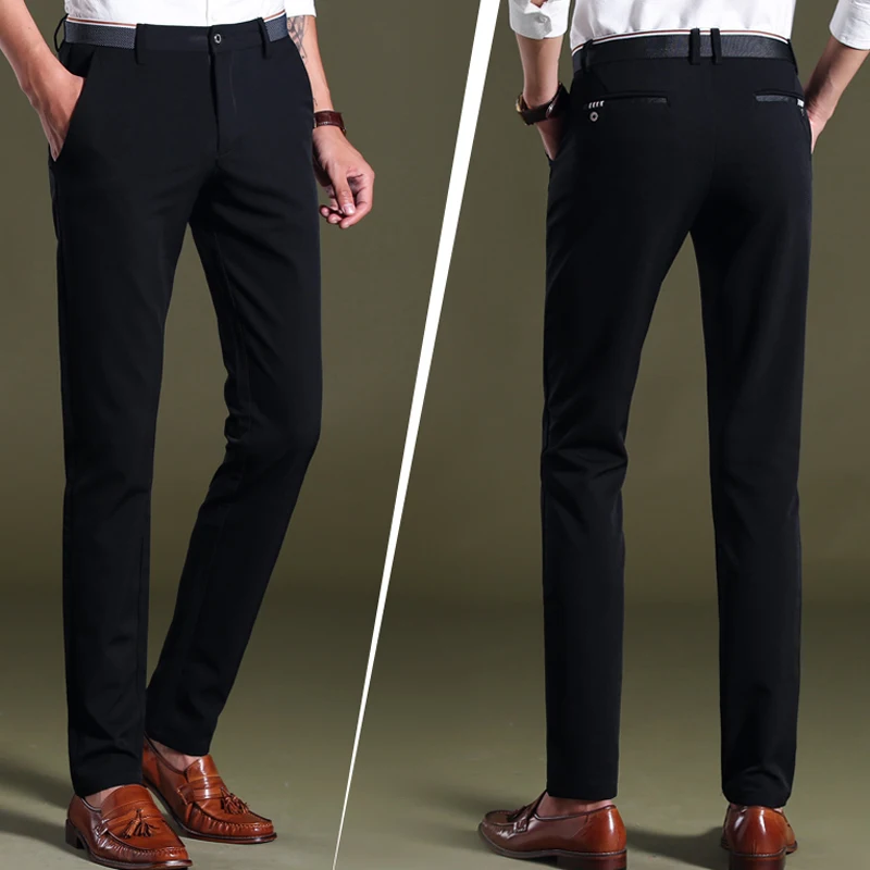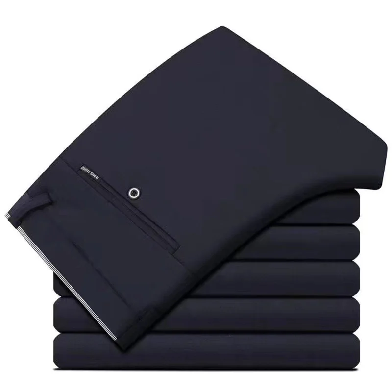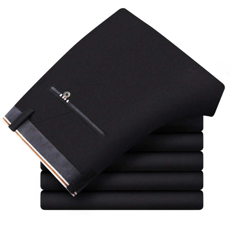 Мужские прямые брюки премиум-класса, модные эластичные строгие деловые штаны, не требующие глажки, С ПЛОСКИМ ПЕРЕДОМ