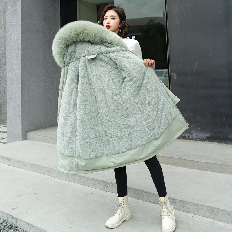 Lusumily длинное пальто, женская зимняя куртка, толстая плюшевая те...