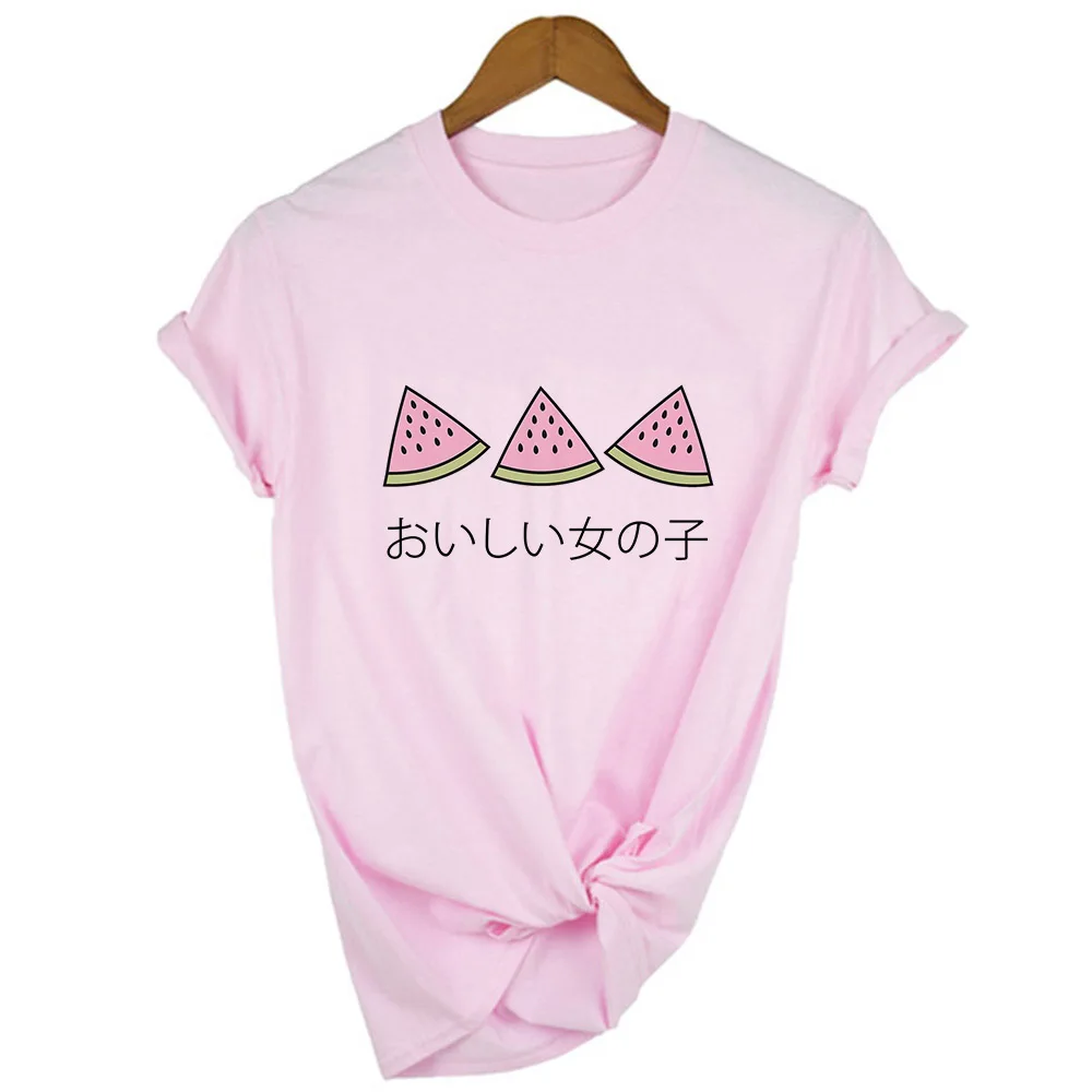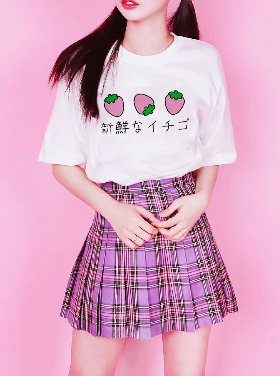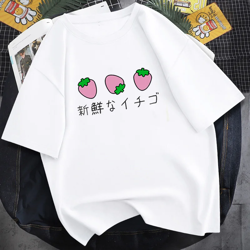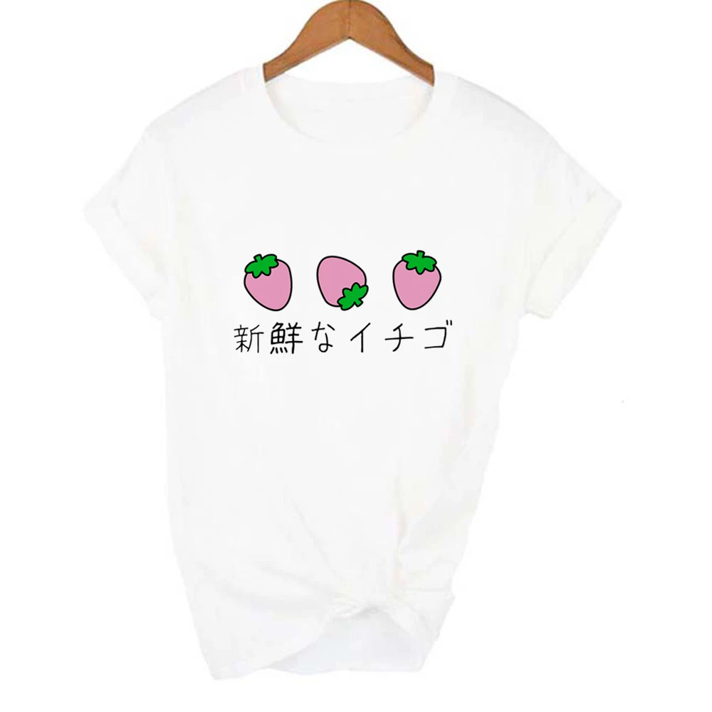 Футболка в японском стиле с изображением свежей клубники, футболка в стиле Харадзюку, забавная футболка в стиле гранж 90-х годов, милые футболки, шикарная Летняя мода