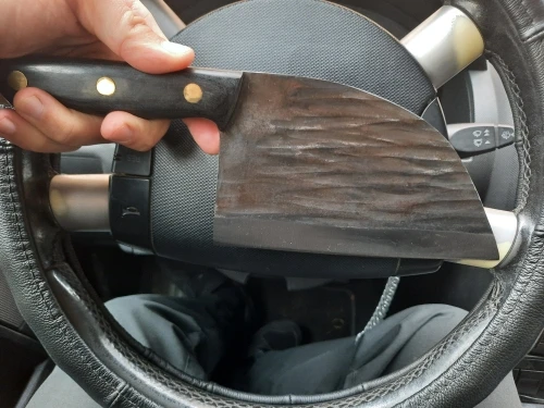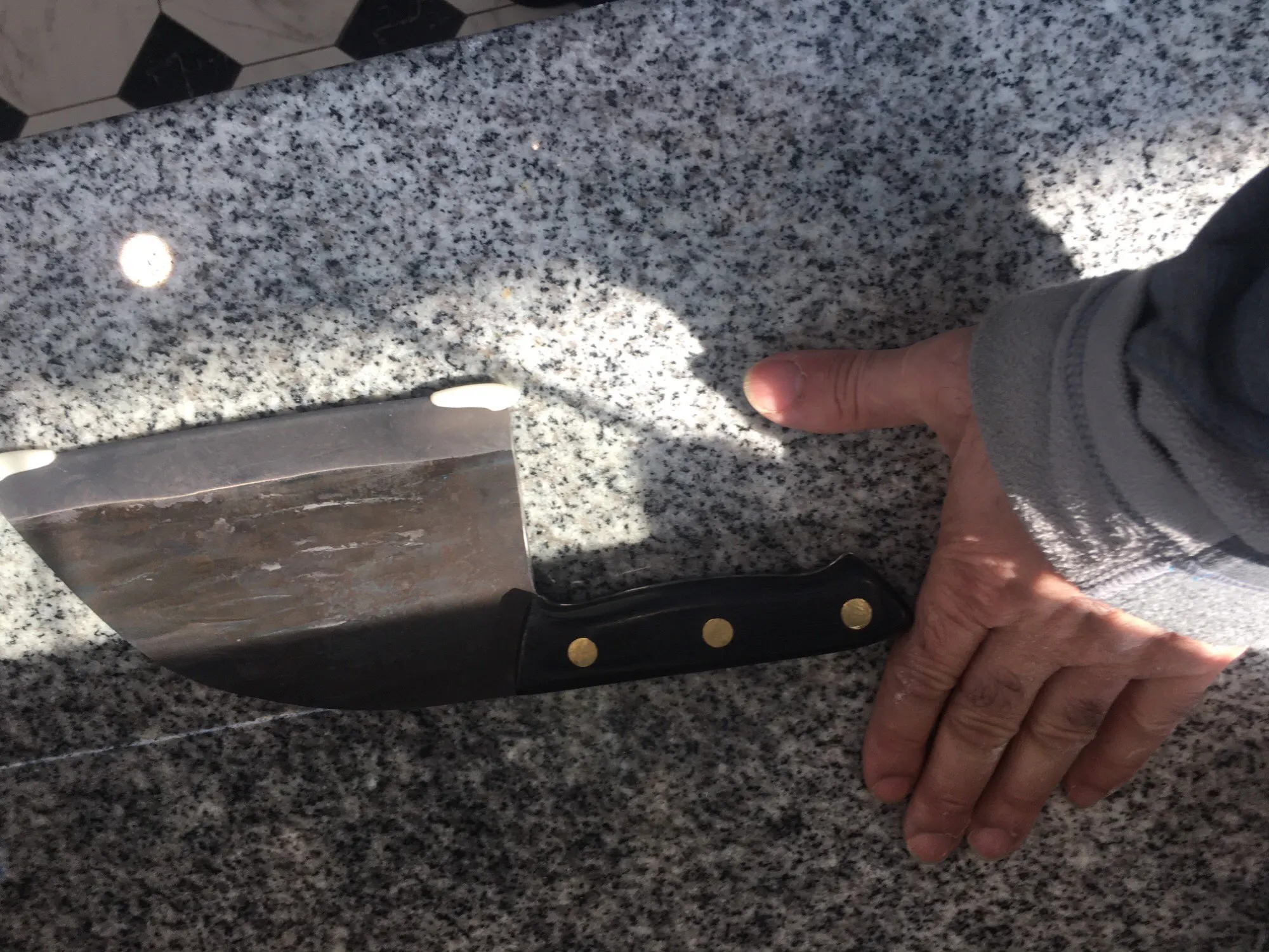 нож-пушка, заточен как бритва, тяжелый, пользуюсь пару недель, пока не затупился