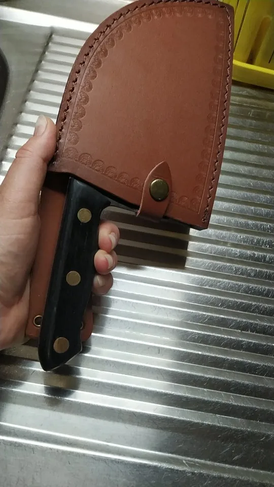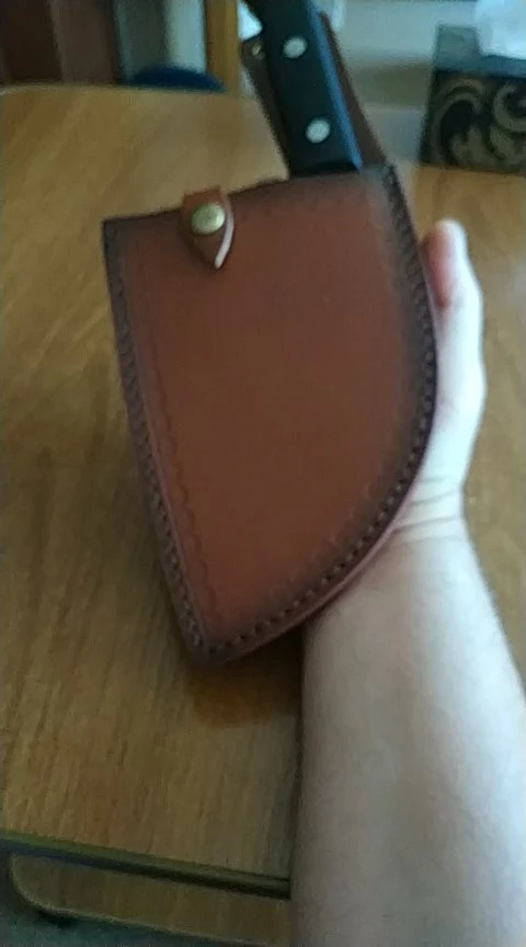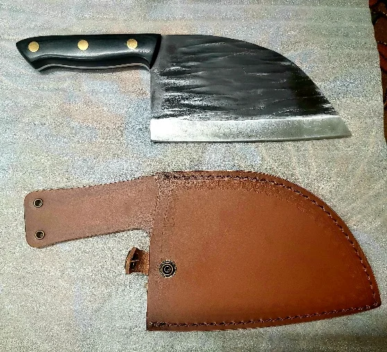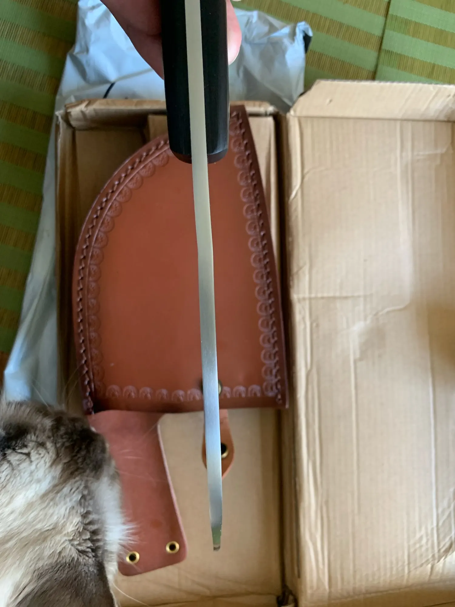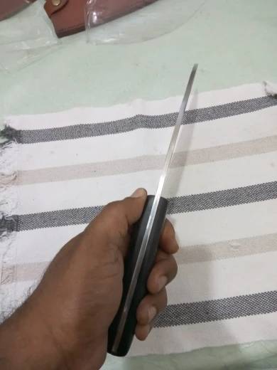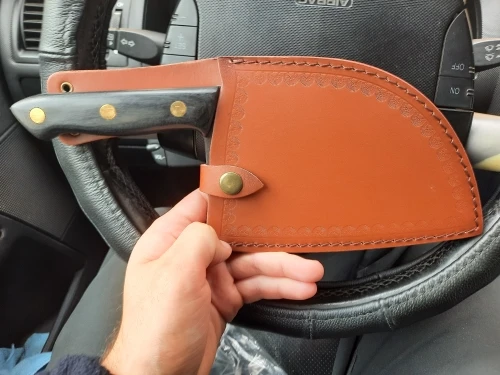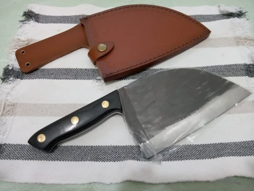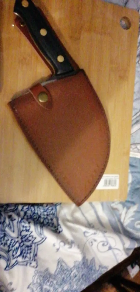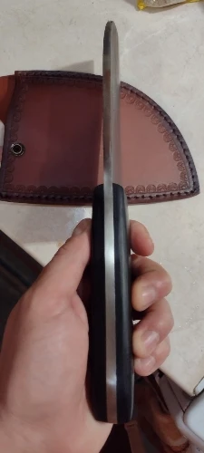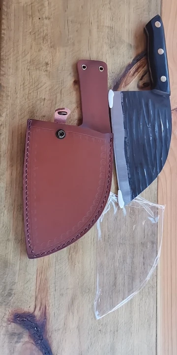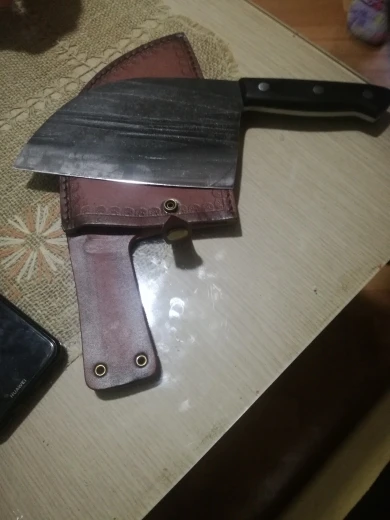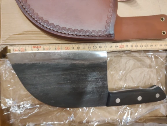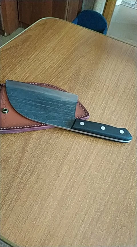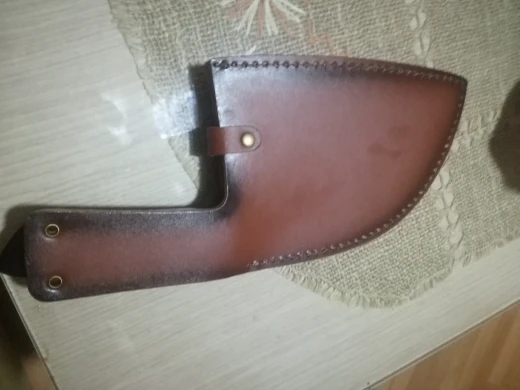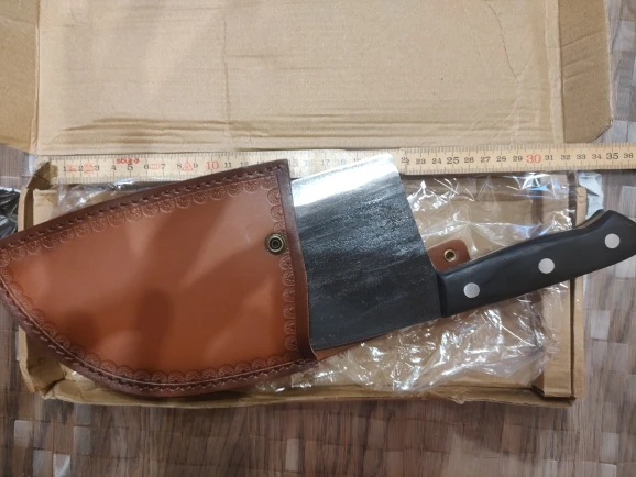 У меня еще не было возможности проверить нож. Нож выглядит как на фото на Aliexpress. Нож был промаслен, поэтому он не ржавеет. На ноже была пластиковая крышка. Также было два небольших протектора для лезвий. Ручка ножа хорошая. Нож Поставляется с красивым кожаным шейхом.