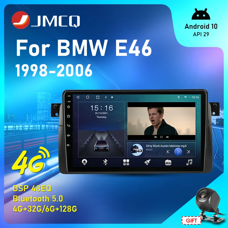 Автомагнитола JMCQ, 2 Din, Android 10, 4G + Wi-Fi, для BMW E46 Coupe (M3 Rover) 316i 318i 1998-2006, мультимедийный плеер, GPS, головное устройство