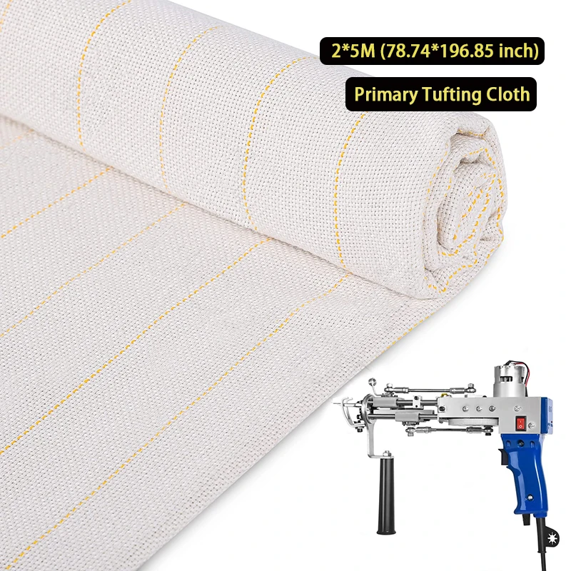 Это первичная ткань коммерческого класса для использования tufting guns. Он имеет маркированные линии, сплетенные в ткани, чтобы помочь в маркировке и тафтинге.