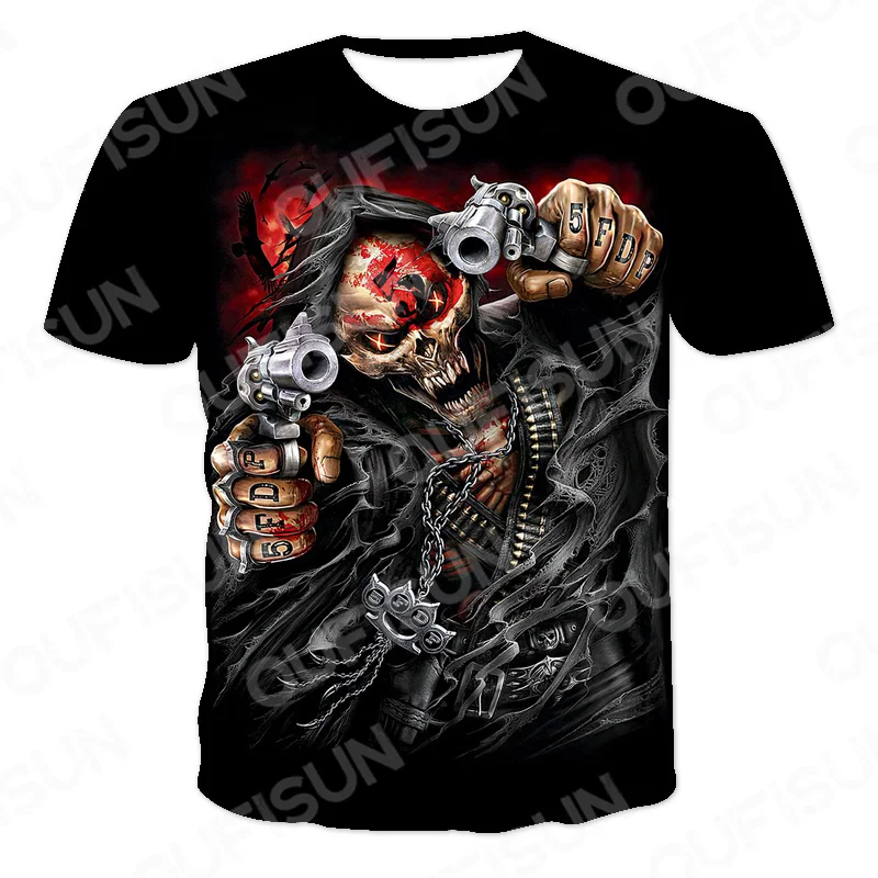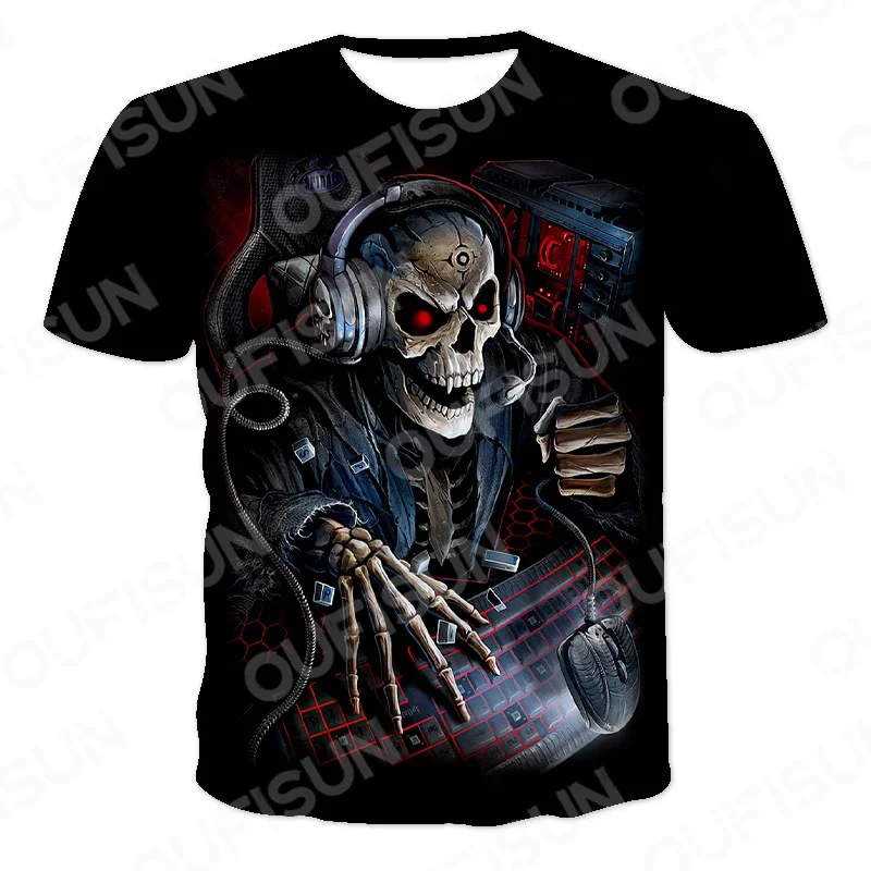 Мужская Винтажная Футболка со скелетом, с круглым вырезом, в стиле панк