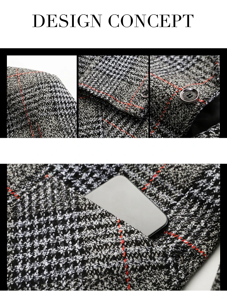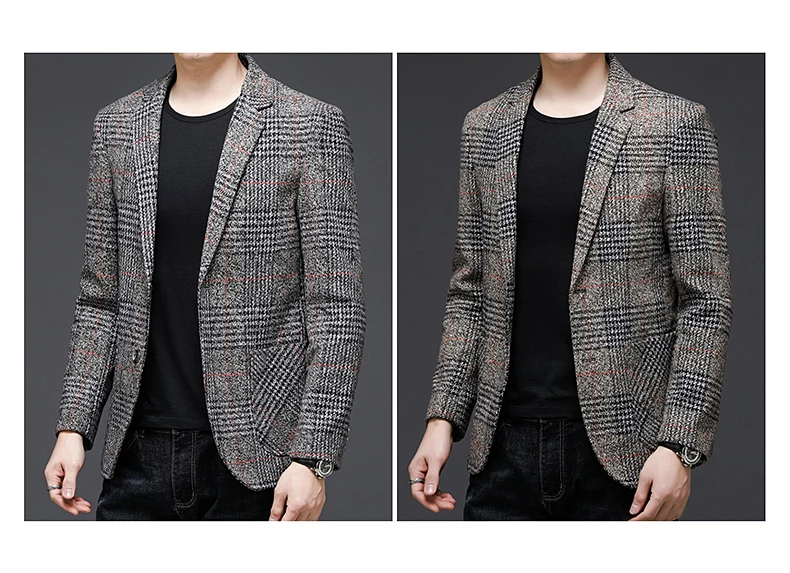Пиджак мужской твидовый в клетку, Повседневный, приталенный, класси...