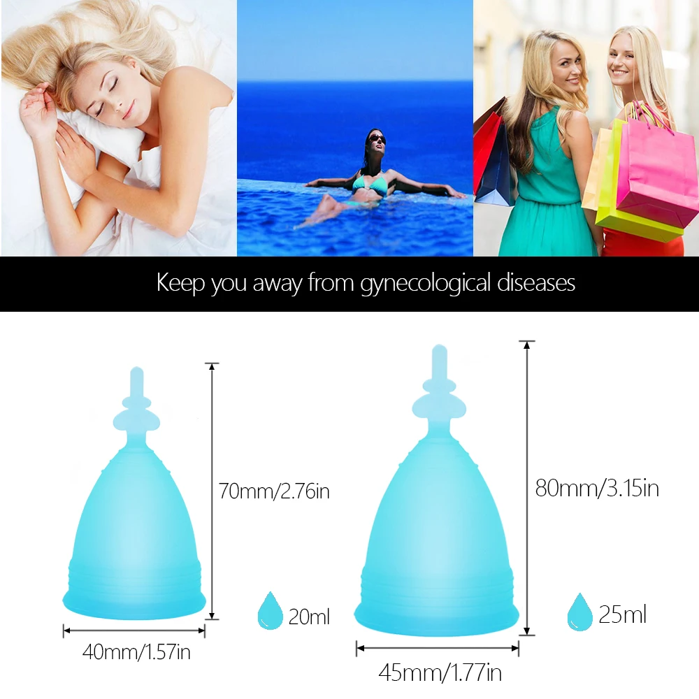 Размер S менструальной чаши: внешний диаметр: 1,57 дюйма/высота: 2,76 дюйма
