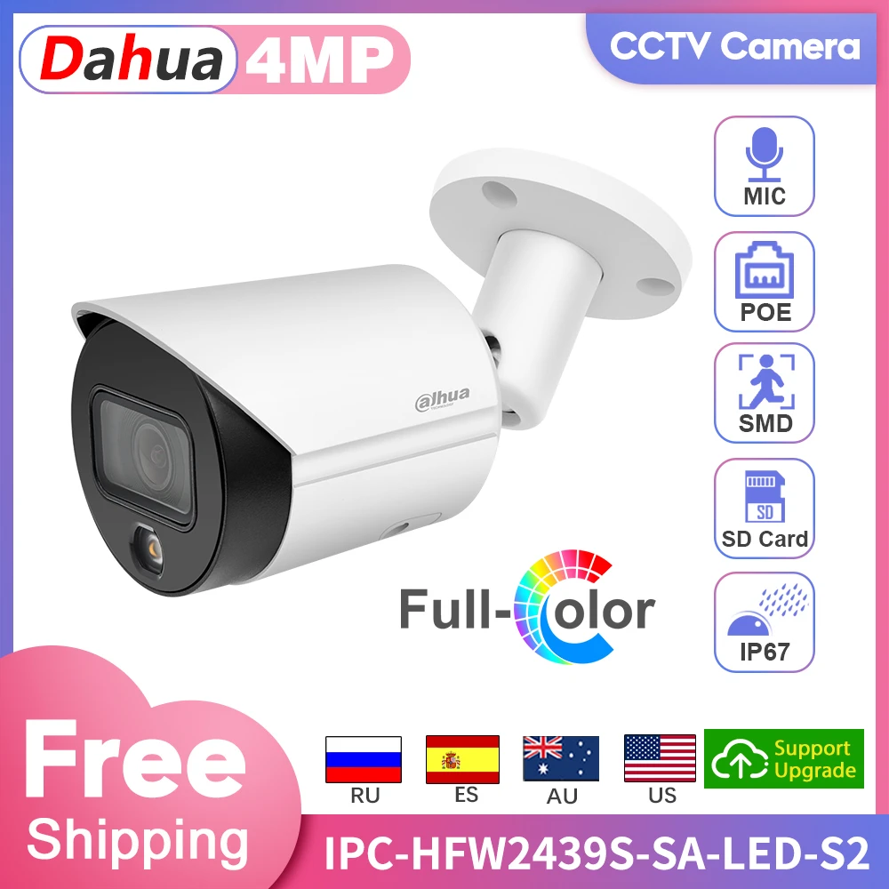 Dahua IPC-HFW2439S-SA-LED-S2 4 МП полноцветное ночное видение POE светильник Теплый свет и микрофон H.265 SD-карта IP67 WDR цилиндрическая камера