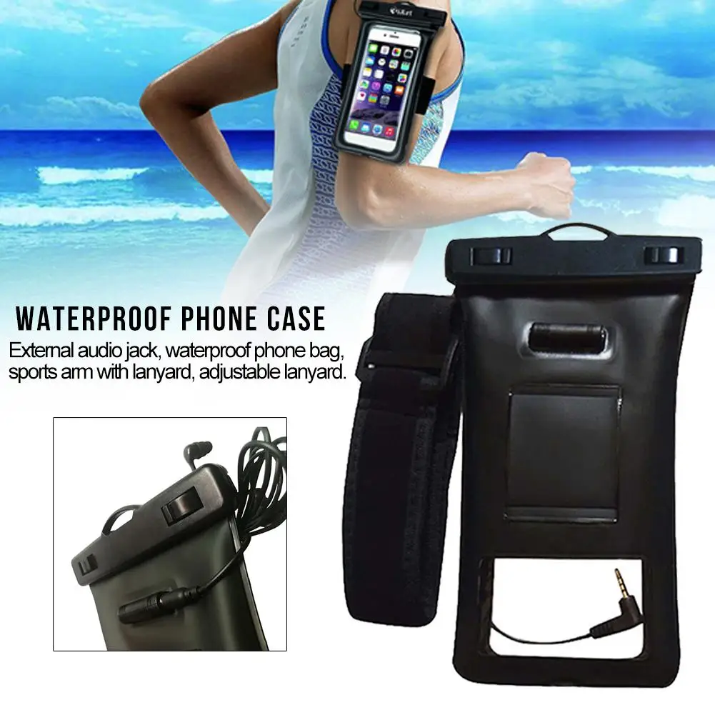Плавающий Водонепроницаемый чехол для телефона из ТПУ с ремешком на руку и аудиоразъемом для плавания, пляжа, дайвинга, дрифтинга