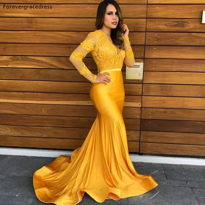 Женские платья для выпускного вечера, желтого цвета, с длинным рука...