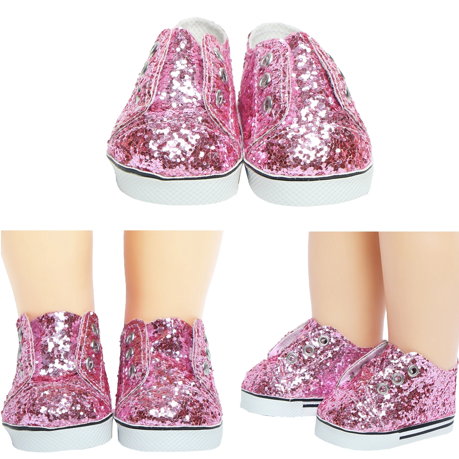 Обувь для куклы 18 дюймов, 1 пара, модная блестящая Спортивная холщовая повседневная одежда для американских кукол 43 см, аксессуары для кукол для девочек, игрушки