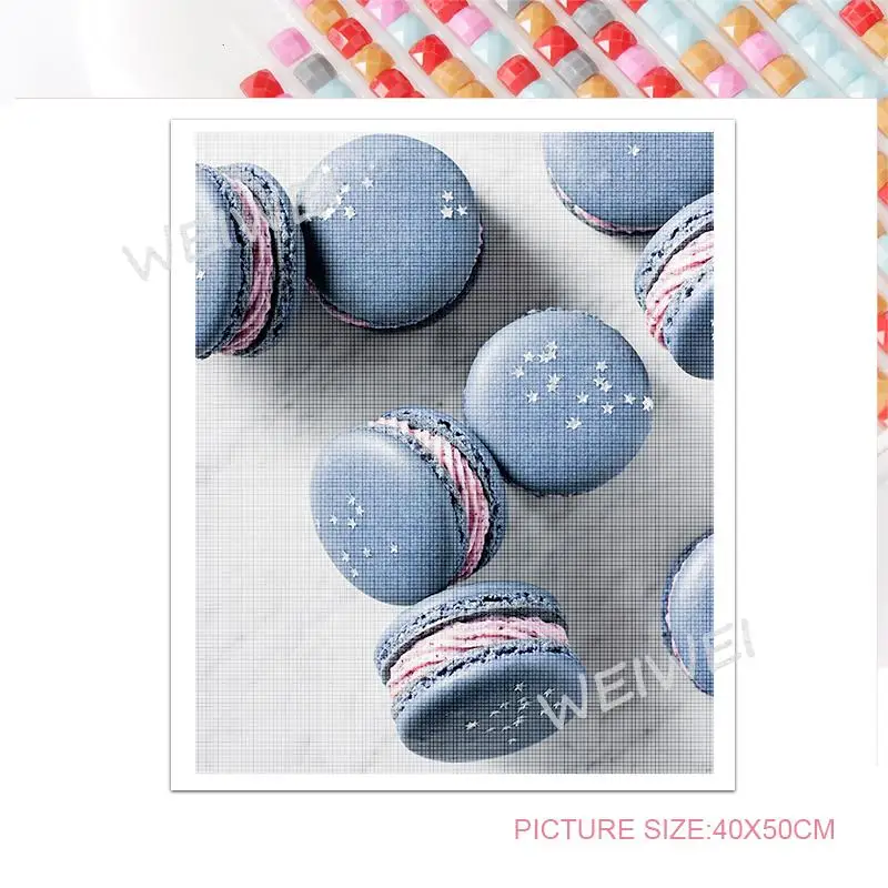 5D Diy алмазная живопись синий десерт Макарон Алмазная вышивка полная квадратнаяКруглая Мозаика вышивка крестиком настенное искусство домашний декор
