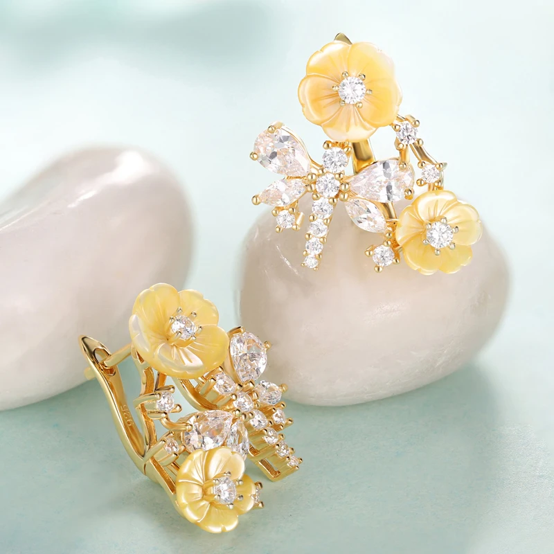 Летний популярный стиль, высокое качество, циркон, натуральный цветок, стрекоза, серьги для женщин, роскошные ювелирные изделия, 2021 тренд