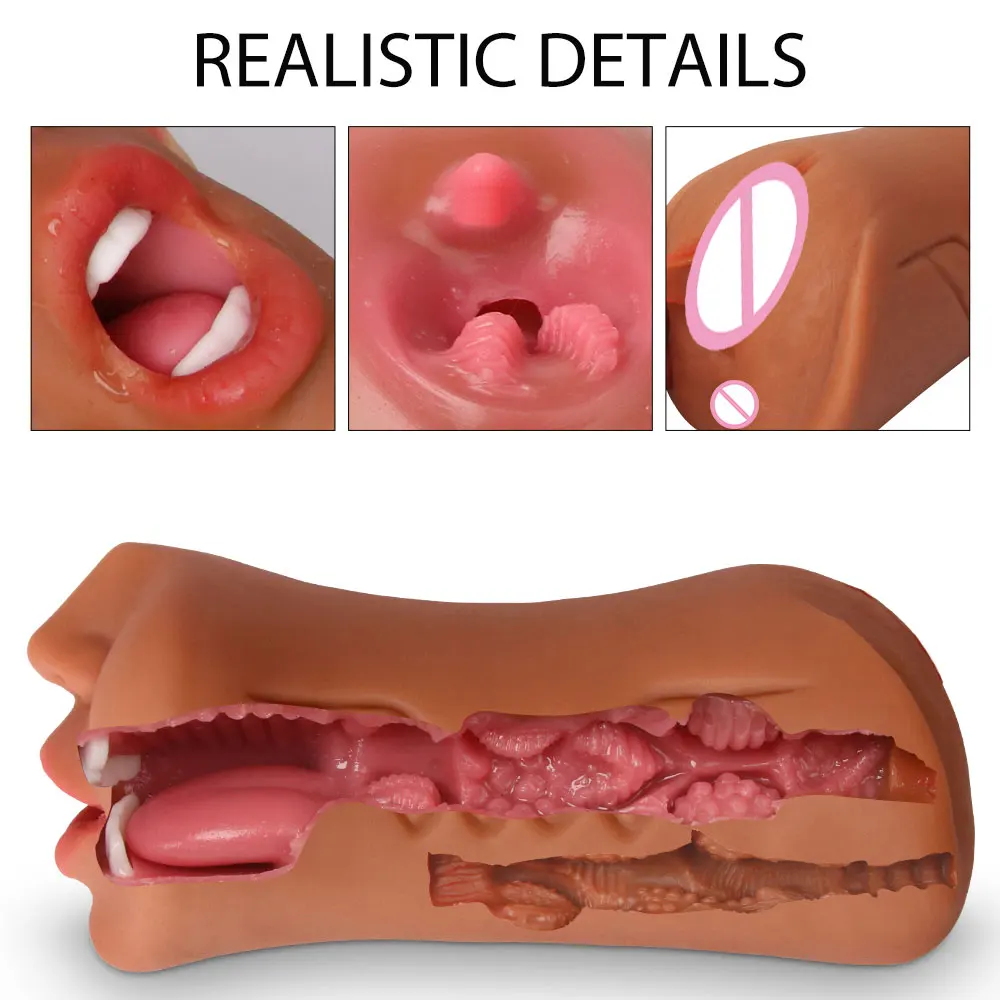 -Настоящий тканевый интерьер-пышный клитор, уникальная и Реалистичная текстура, предоставит вам впечатляющий оригинальный опыт, который, безусловно, заставит вас чувствовать себя комфортно и довольны. Текстура каждого отверстия отличается, доставляя большое удовольствие. Эта мужская секс-игрушка напомнит вам о страстной ночи!