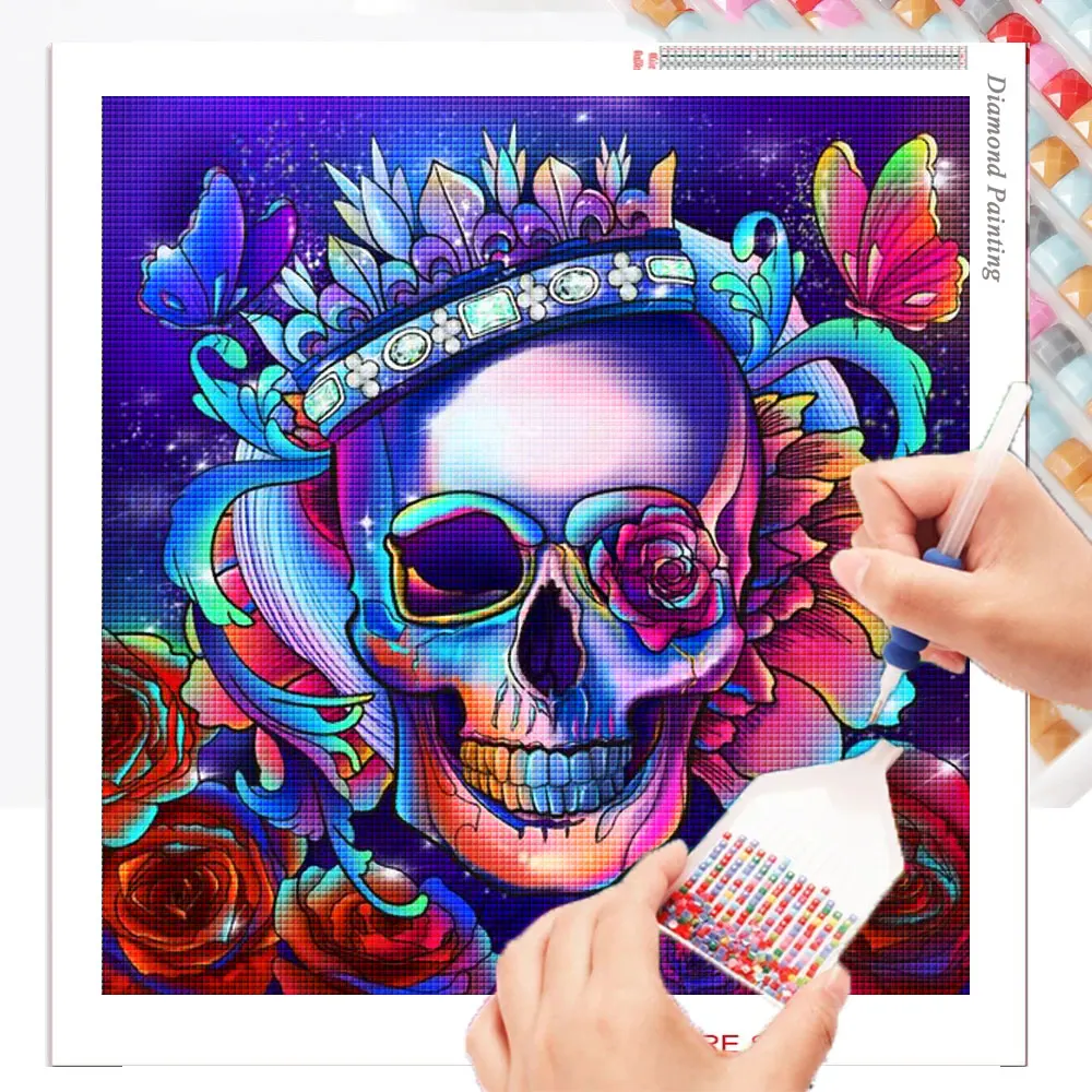 【Область сверления】:Полный квадратный/круглый Алмазная мозаика череп цветок