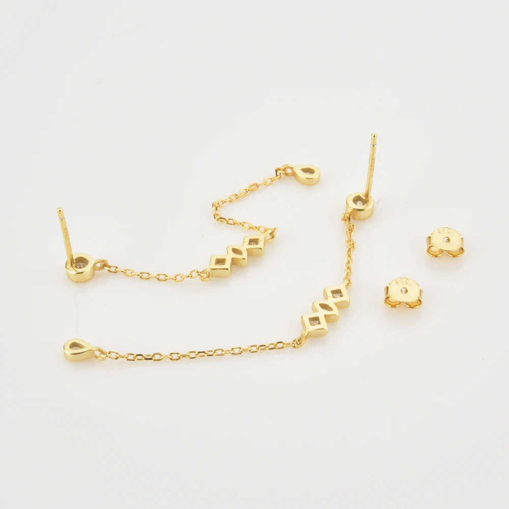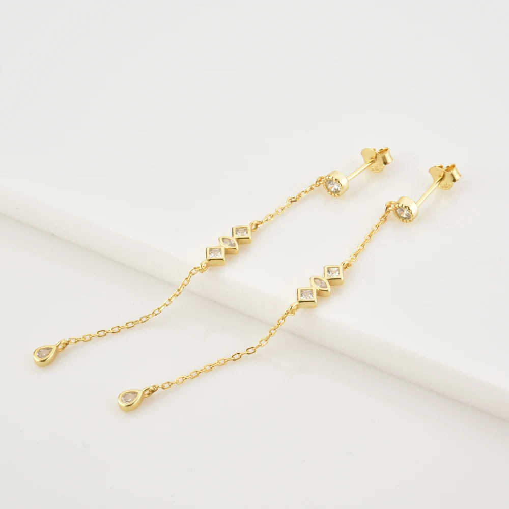 Женские Длинные украшения для пирсинга ANDYWEN, из стерлингового серебра 925 пробы с кристаллами Длинные серьги-цепочки пробы, Золотой пирсинг