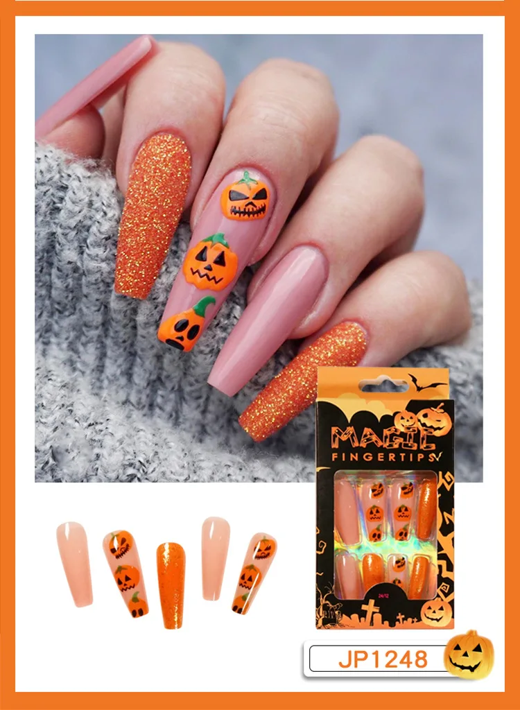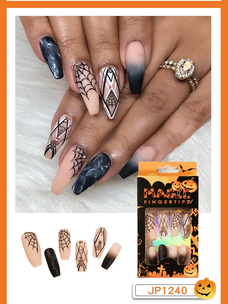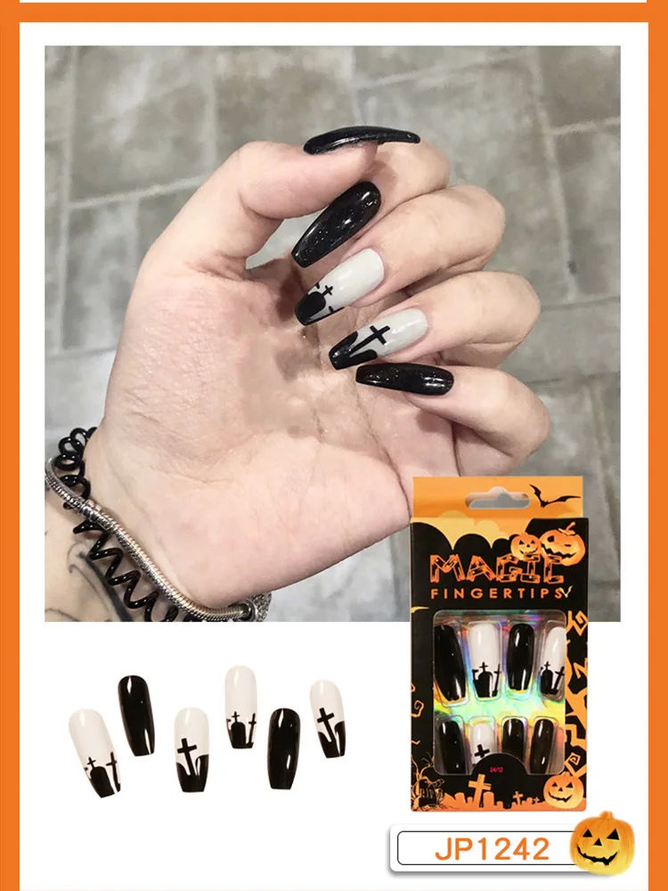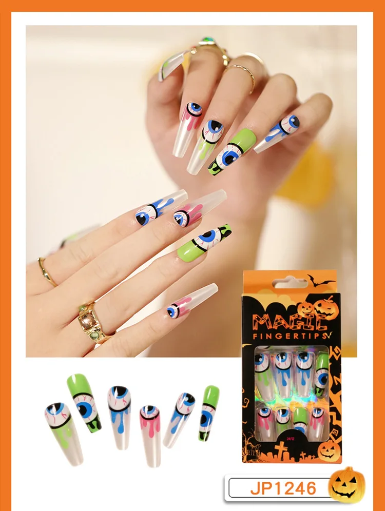 Нашивка для ногтей с принтом гримаса тип клея съемный длинный абзац Мода Маникюр накладные ногти патч для Хэллоуина TN