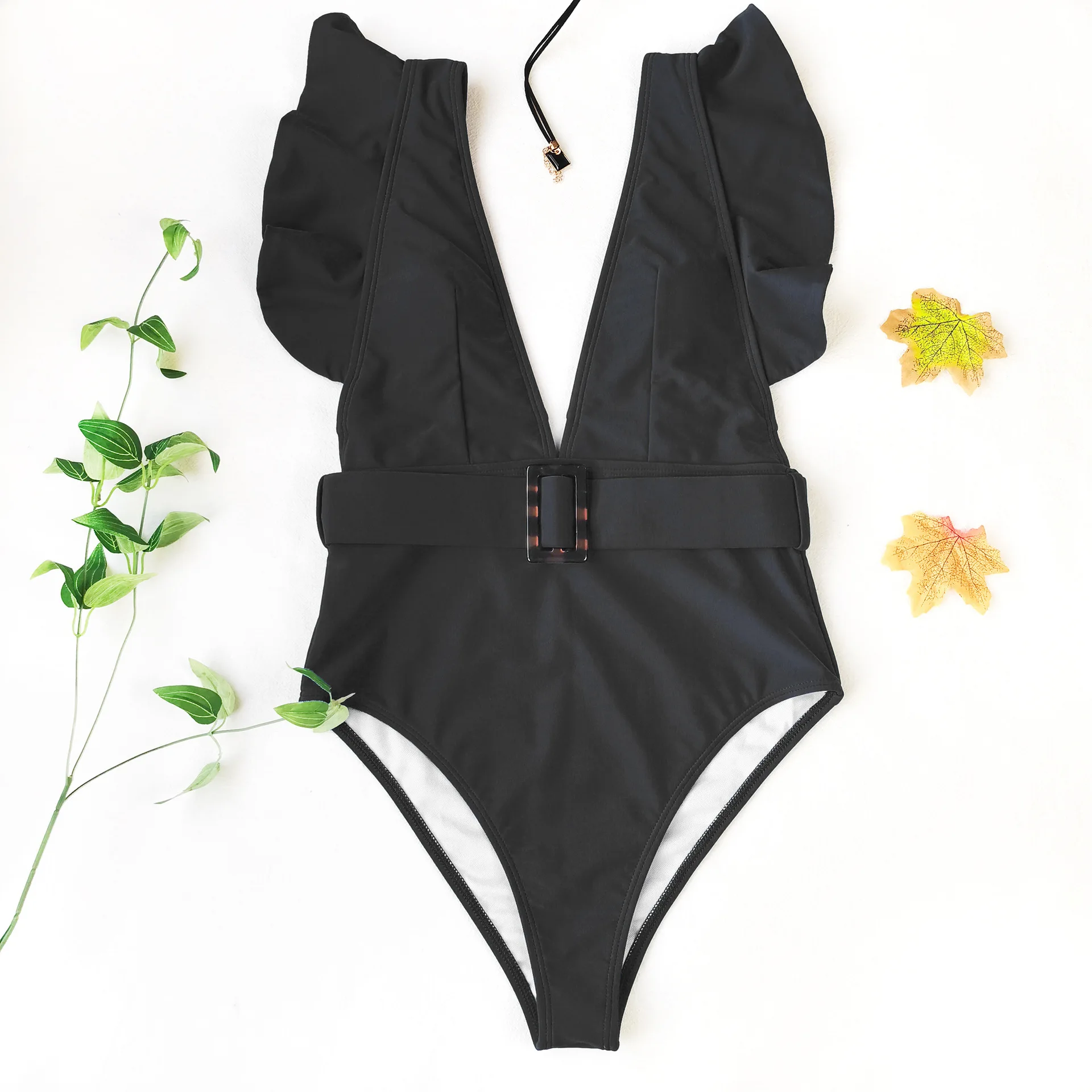 Летняя пляжная одежда 2021, слитный купальный костюм для серфинга, купальный костюм с оборками, сексуальная одежда для плавания, монокини с глубоким V-образным вырезом, купальный костюм с высокой талией
