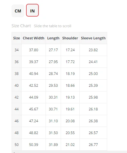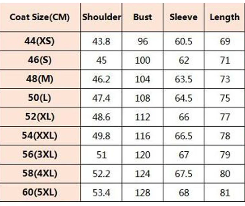 Таблица размеров